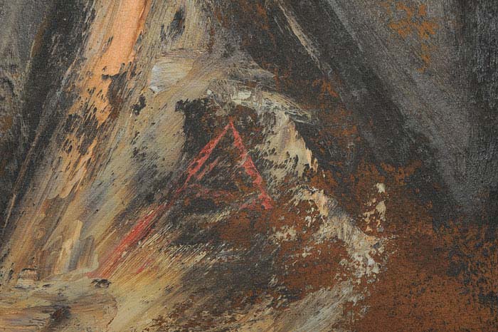 Giordano Montorsi, "In memoria", 2015, Installazione, "Profonda terra", 1987, olio su tela, "Testimoni", 2014, tecnica mista